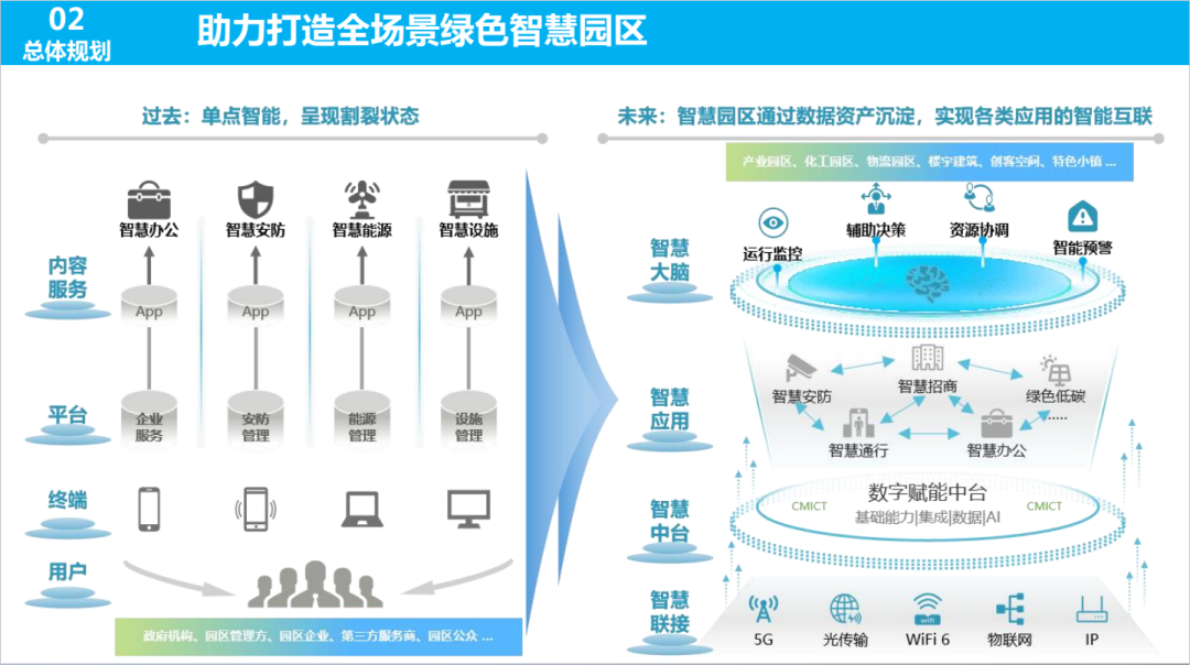 零碳智慧园区从重视“传统基建”等硬环境到重视“新基建”等软环境,打造智慧消防、环境监测等数字设施,推动园区实现以数据为中心的数字化转型。由亮见数字智慧城市整理。布局以5G、人工智能、工业互联网、大数据中心为代表的新型基础设施,推进5G基站、物联网规模覆盖,提升园区基础实施运行效率和服务能力,形成与数字经济和智慧社会发展需求相适应的新型融合基础设施体系。
